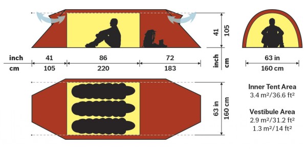 1. Kerlon 1800 材质外帐,强度高,抗撕裂强度高达18kg。