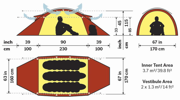 滑雪、划船、沙漠旅行者很早就赞赏SAIVO的内部空间宽敞,并且前庭也很宽大,自立式支撑结构、易于搭设的设计。当然,这些强大的优点,也适合需求不用这么高的使用族群,不管是悠闲的汽车露营,或是 为期一周的登山健行都是非常适合。