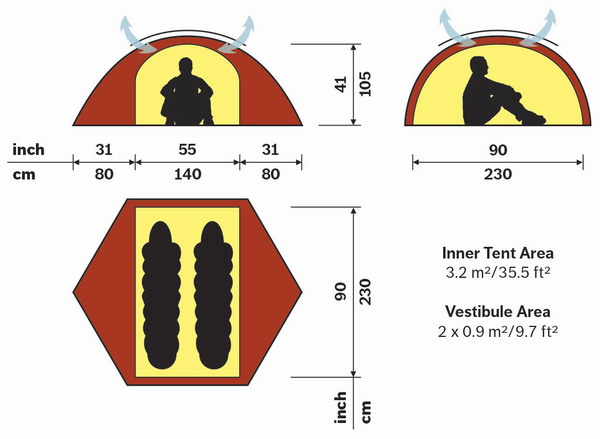 容易搭设,非常稳定、宽敞、高强度/重量比,最初设计是为了独木舟旅行者所设计的,在那之后他已经获得许多户外运动者的喜爱;圆顶的设计让内帐较高挑,再搭配宽敞的前庭,能放入各式的装备,提供了完善的遮蔽。